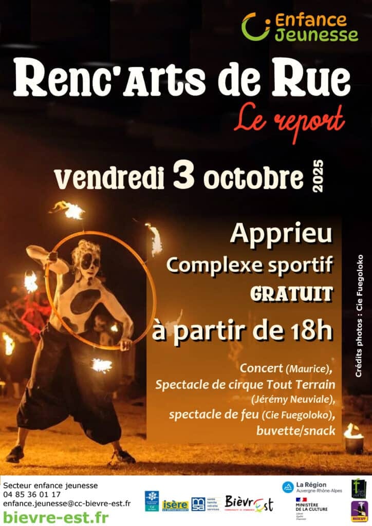 Nous vous informons de l’annulation du festival Renc’Arts de Rue, initialement prévu ce soir à Le Grand-Lemps. En raison des orages prévu ce soir (vigilance orange) et afin d’assurer la sécurité du public, des artistes et des équipes, l’organisation ne peut être maintenue dans des conditions satisfaisantes. Nous vous remercions de votre compréhension.