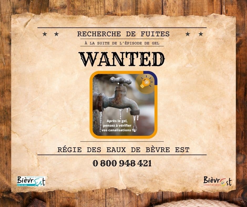 À la suite du dernier épisode de gel, nous vous invitons vivement à vérifier vosregards compteurs pour vous assurer de l’absence de fuite sur vos branchementsd’eau.Actuellement, les réservoirs d’eau potable se vident du fait de la multiplication desfuites sur les branchements. Vous constatez une fuite, un bruit suspect dans un regard compteur d’eau, merci decontacter […]
