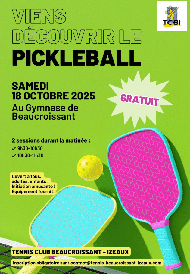 Le Tennis Club Beaucroissant Izeaux vous invite à une initiation pickleball :