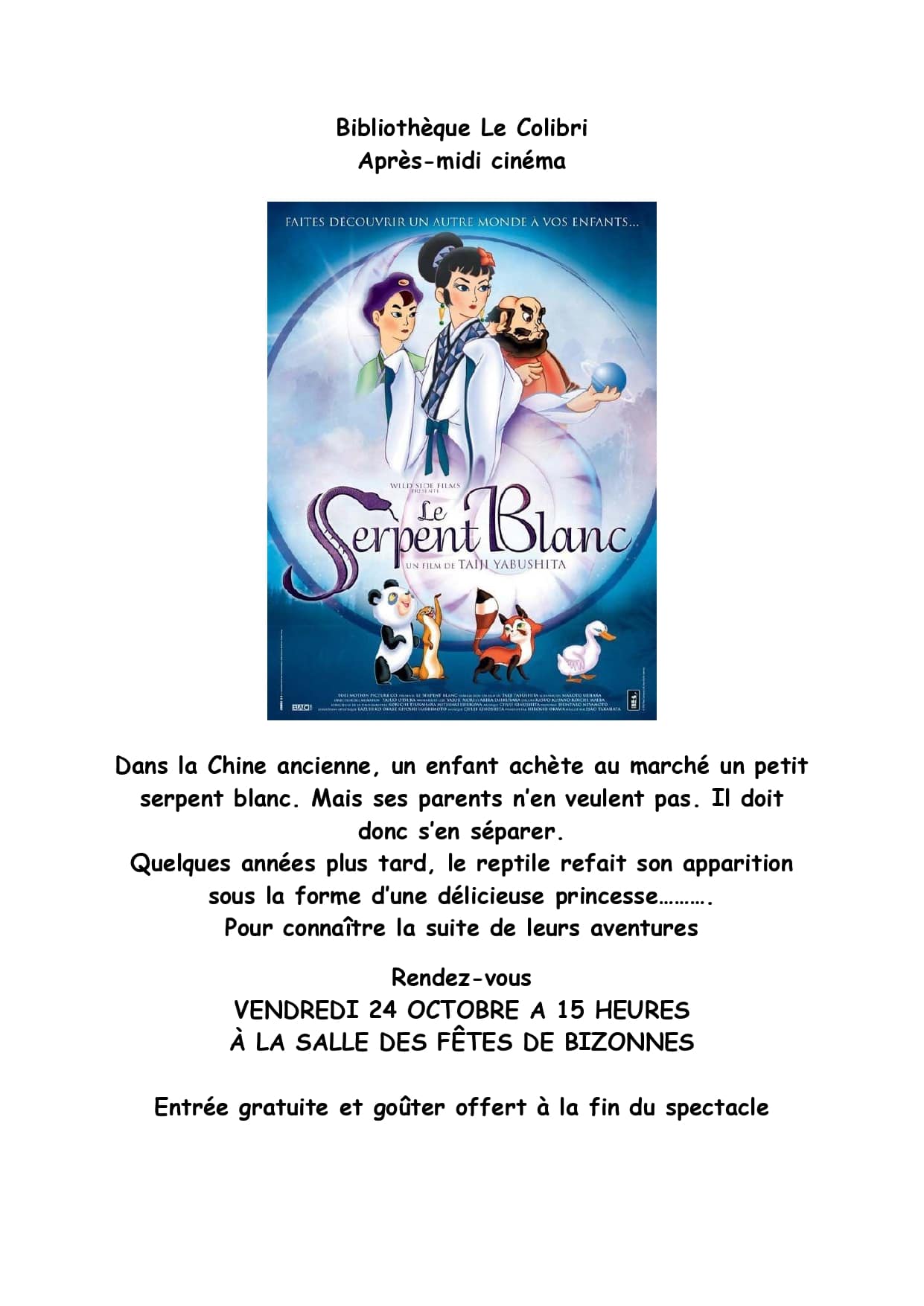 PROJECTION "LE SERPENT BLANC" À IZEAUX21oct14h0016h00