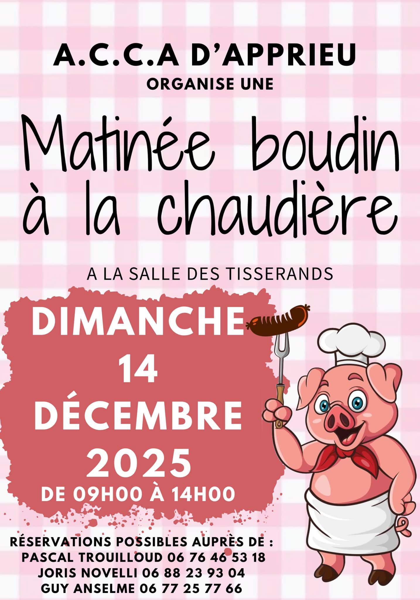 Matinée boudin à la chaudière organisée par l'ACCA D'APPRIEU14dec9h0014h00