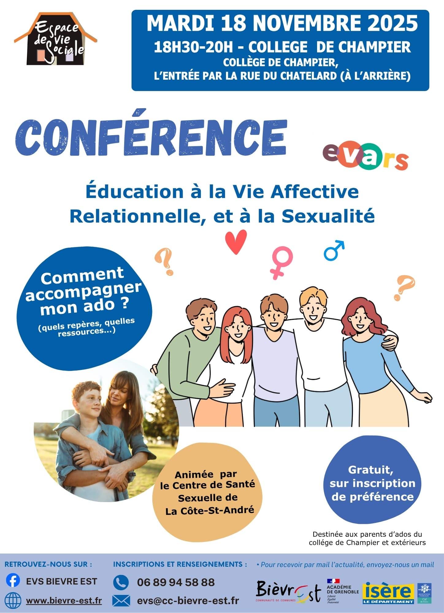 Cette conférence est destinée aux parents d’ados du collège de Champier et extérieurs.