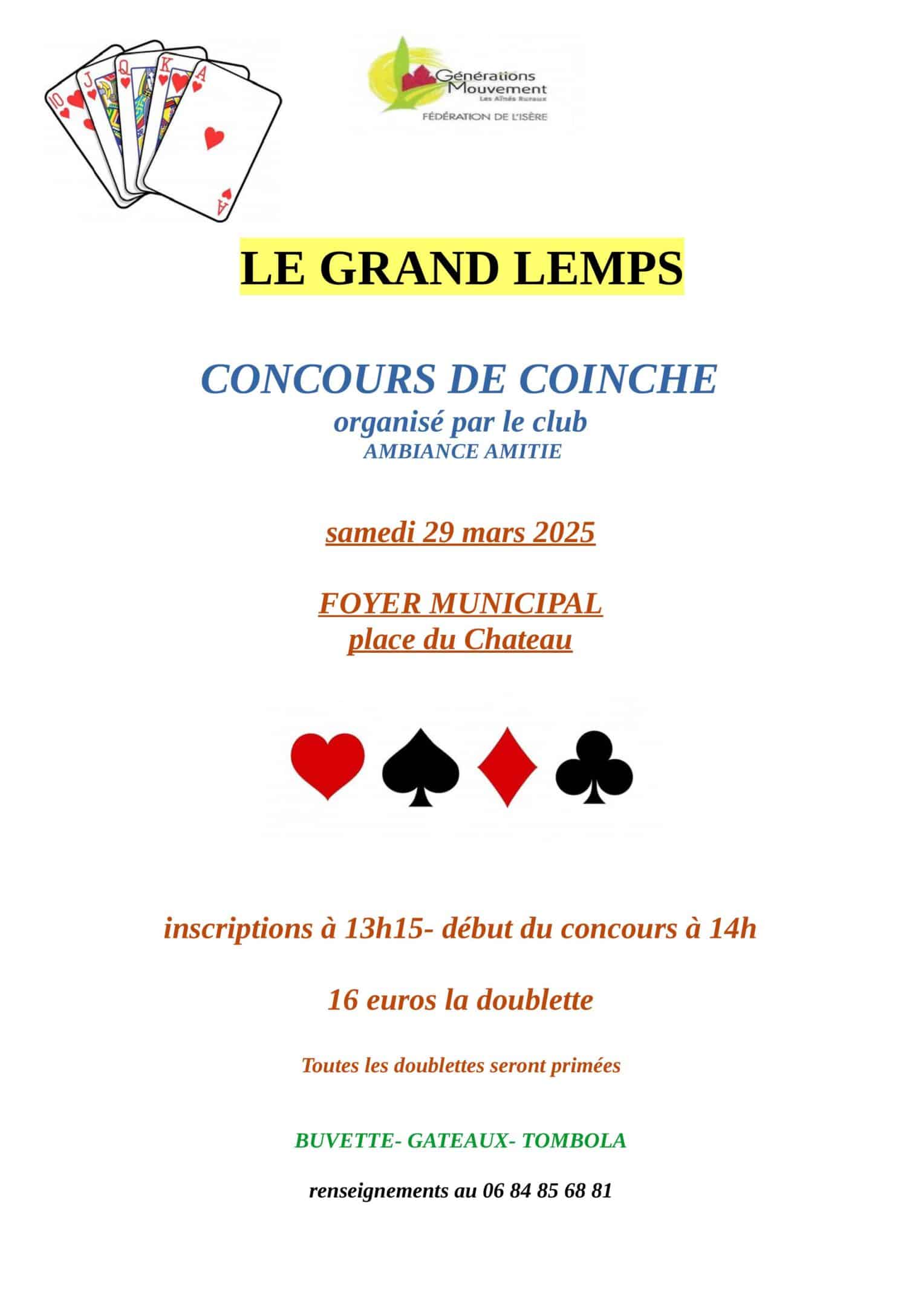 CONCOURS DE COINCHE - CLUB AMBIANCE AMITIÉ - Foyer Municipal - Le Grand-Lemps29mar13h1523h59
