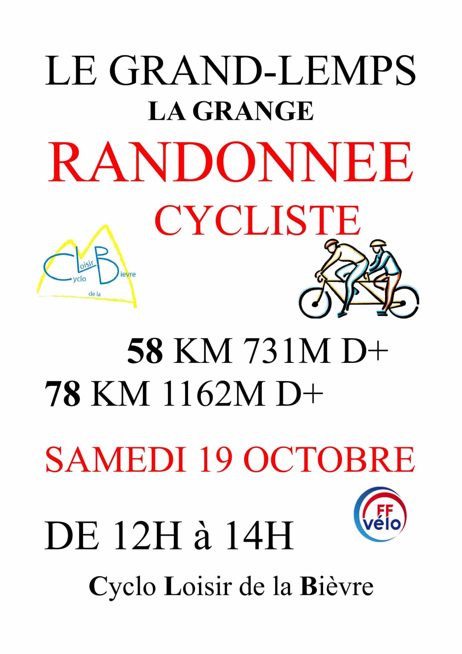Randonnée Cycliste - Cyclo loisir de la Bièvre - La Grange19oct12h0014h00