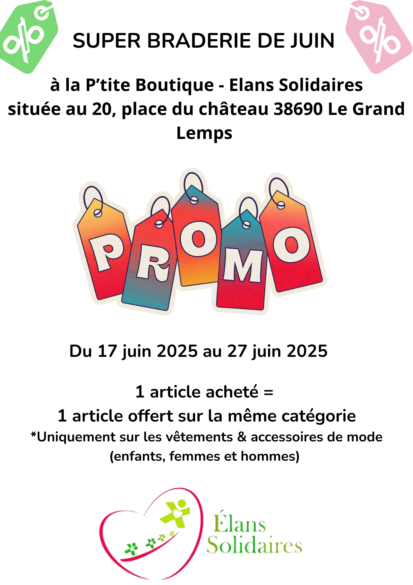 SUPER BRADERIE DE JUIN - ELANS SOLIDAIRES - LE GRAND LEMPS17jui(jui 17)9h0027(jui 27)17h00