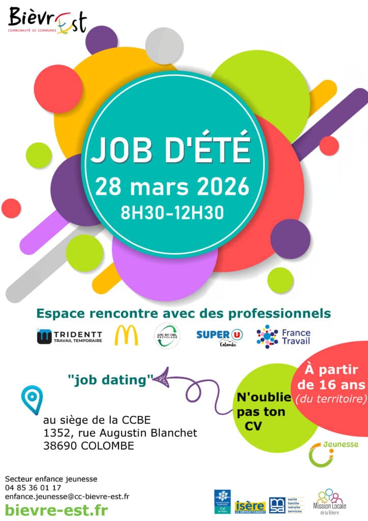 La communauté de communes de Bièvre Est organise un job dating le 28 mars dédié aux jeunes à partir de 16 ans à la recherche d’un job d’été.